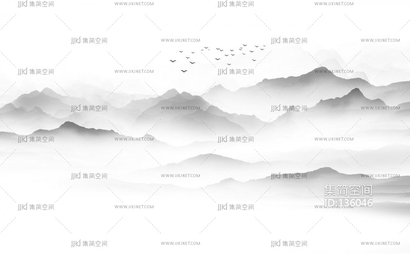 中式灰色山水壁画贴图 材质贴图下载 [贴图ID:00]
