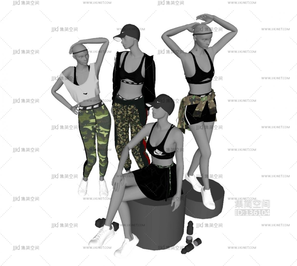 04-现代模特_服饰_鞋帽_服装_女装_橱窗_衣服_帽子_外衣_鞋子_代服装店su模型su草图模型下载
