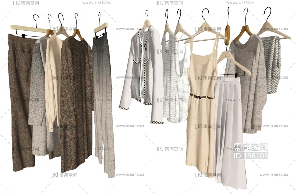 现代服装衣服架su模型 su草图模型下载 [模型ID:136105]