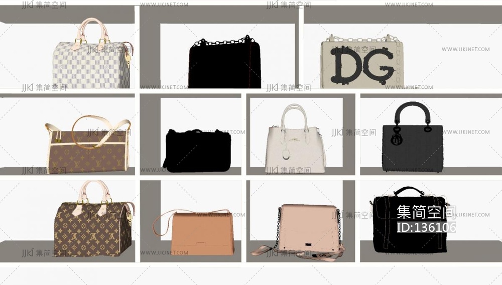 现代女包,手提包su模型 su草图模型下载 [模型ID:136106]