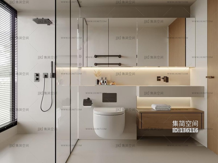奶油风卫生间3d模型 3d模型下载 [模型ID:136116]