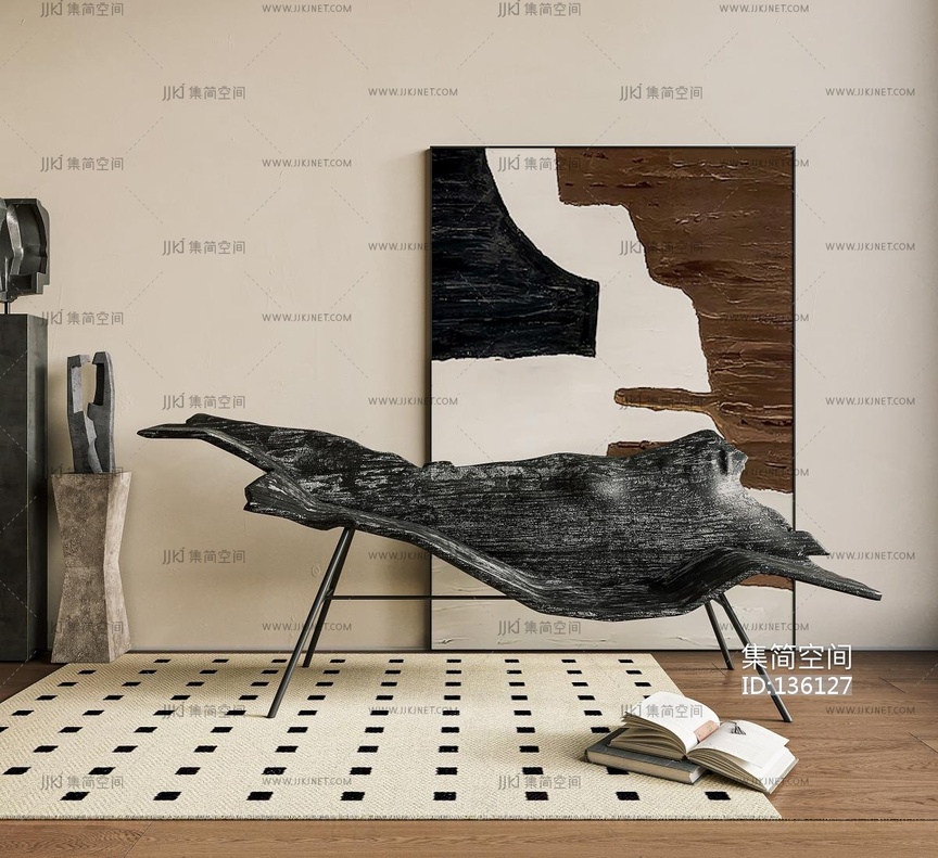 侘寂异形椅子装饰画摆件 3d模型下载 [模型ID:136127]