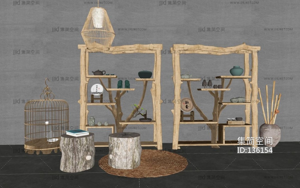 自然风树枝装饰架茶叶柜su模型 su草图模型下载 [模型ID:136154]