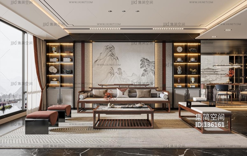 新中式客厅3d模型 3d模型下载 [模型ID:136161]