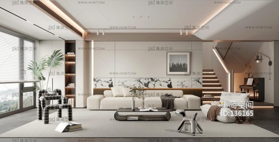 现代客厅3d模型 3d模型下载 [模型ID:136165]