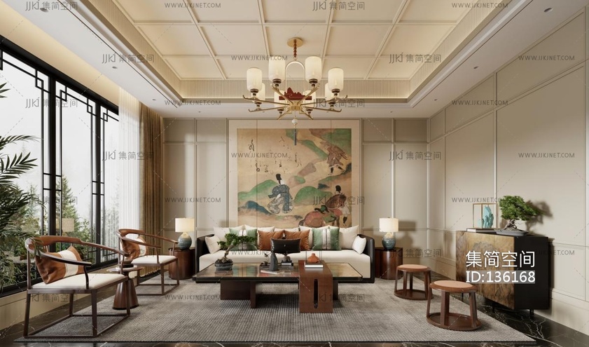 新中式客厅3d模型 3d模型下载 [模型ID:136168]