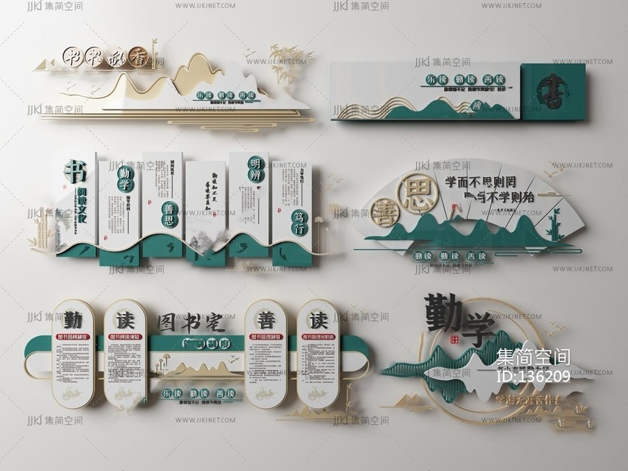 新中式校园文化墙3D模型 3d模型下载 [模型ID:136209]