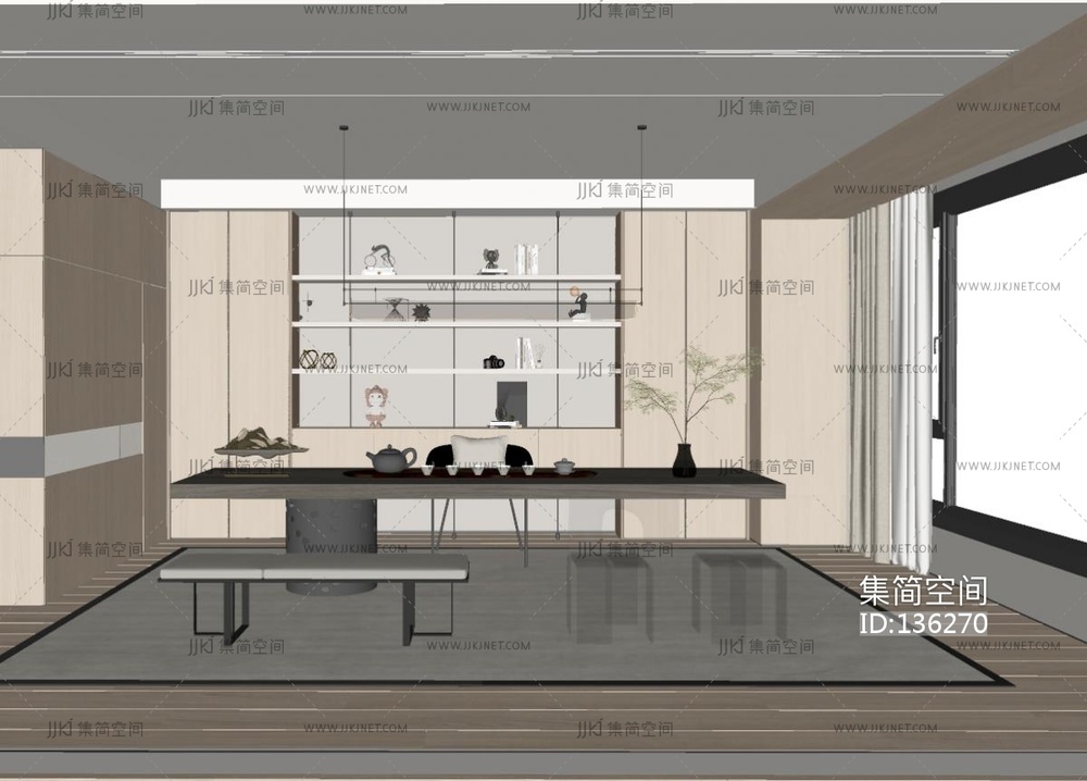 新中式茶室su模型 su草图模型下载 [模型ID:136270]
