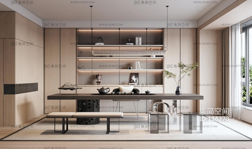 中古侘寂茶室_侘寂中古风茶室_中古风茶室_茶桌组合_现代中古风茶室_茶室SU模型su草图模型下载