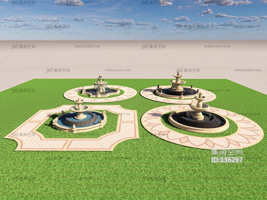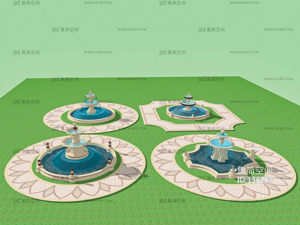 欧式点状水晶花钵涌泉跌水 su草图模型下载 [模型ID:136297]