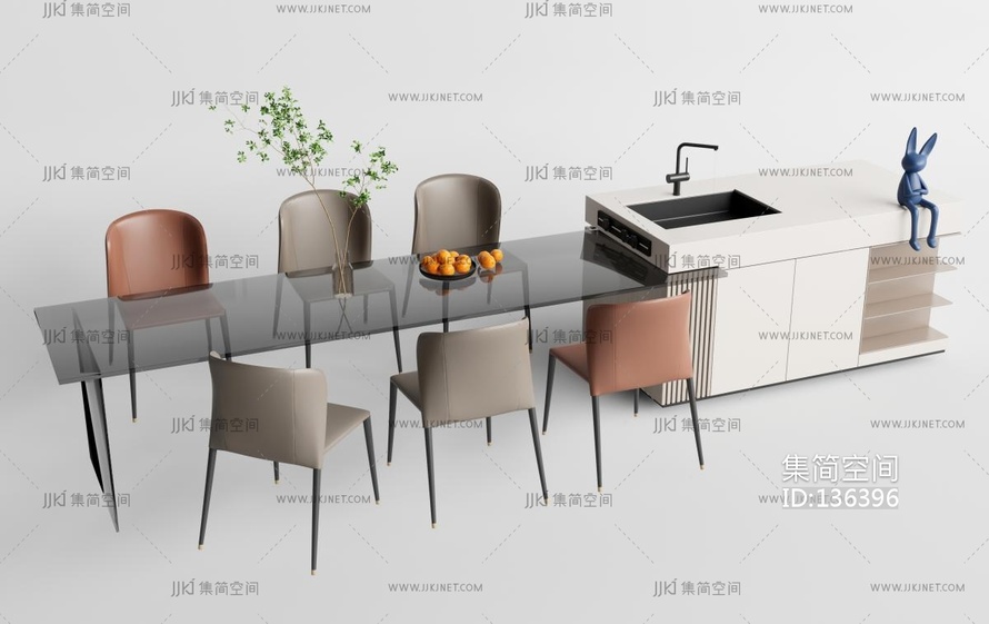 现代简约岛台餐桌椅组合 su草图模型下载 [模型ID:136396]