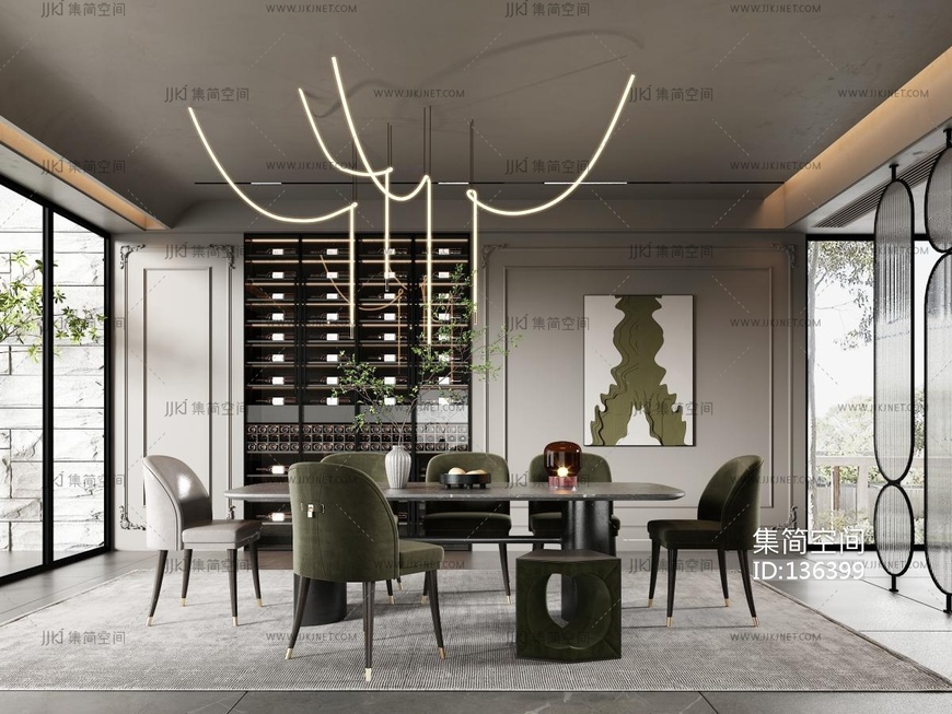 欧式古典餐厅古典雕花餐桌椅 3D模型3d模型下载