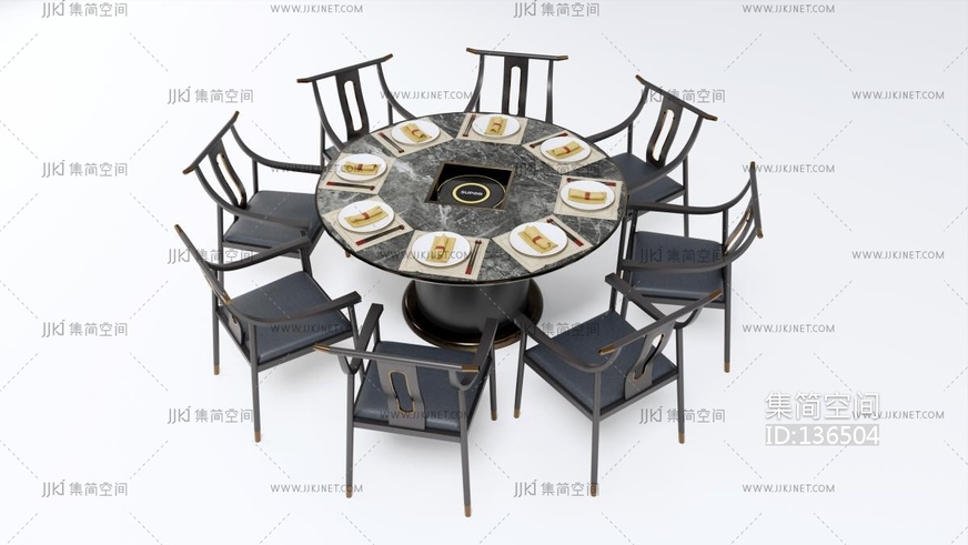 新中式餐桌 su草图模型下载 [模型ID:136504]