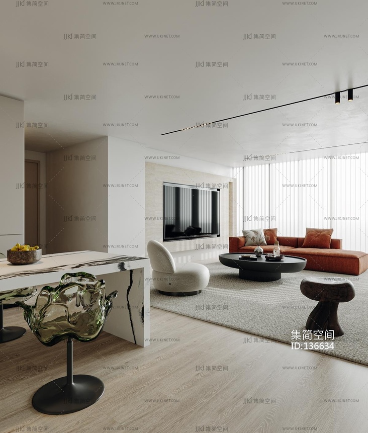 现代侘寂风客厅 3d模型下载 [模型ID:136634]