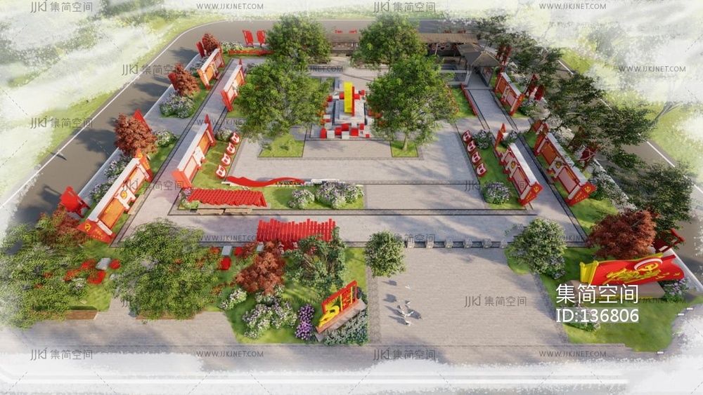 党建公园 (1) su草图模型下载 [模型ID:136806]