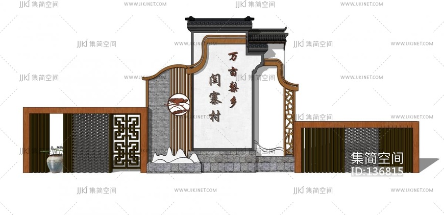 禅意新中式大门su草图模型下载