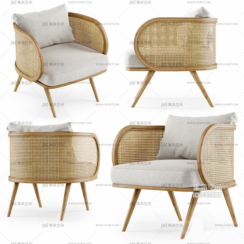 现代诧寂藤编户外休闲椅3D模型 3d模型下载 [模型ID:137598]