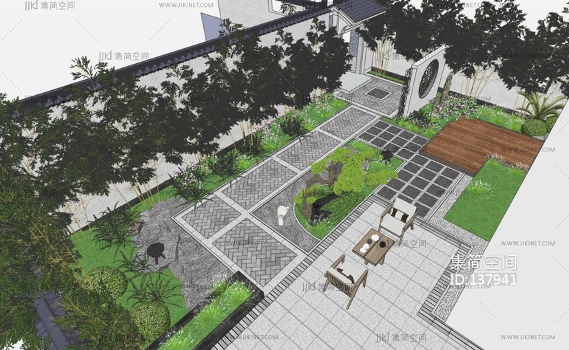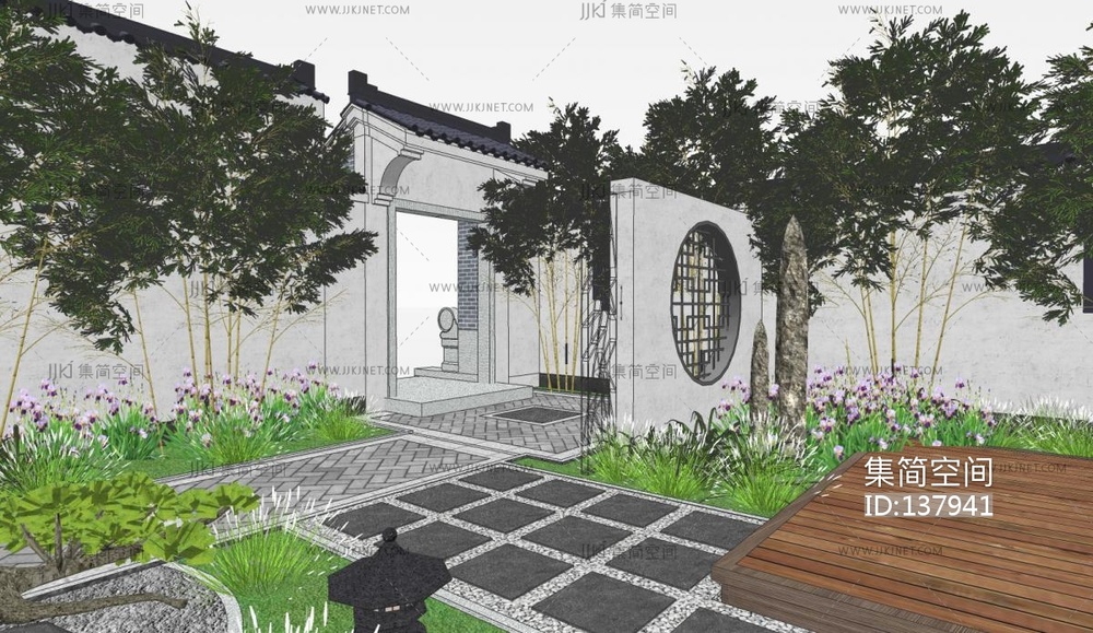 新中式庭院景观,院墙围墙,门头入口门竹子院墙 su草图模型下载 [模型ID:137941]