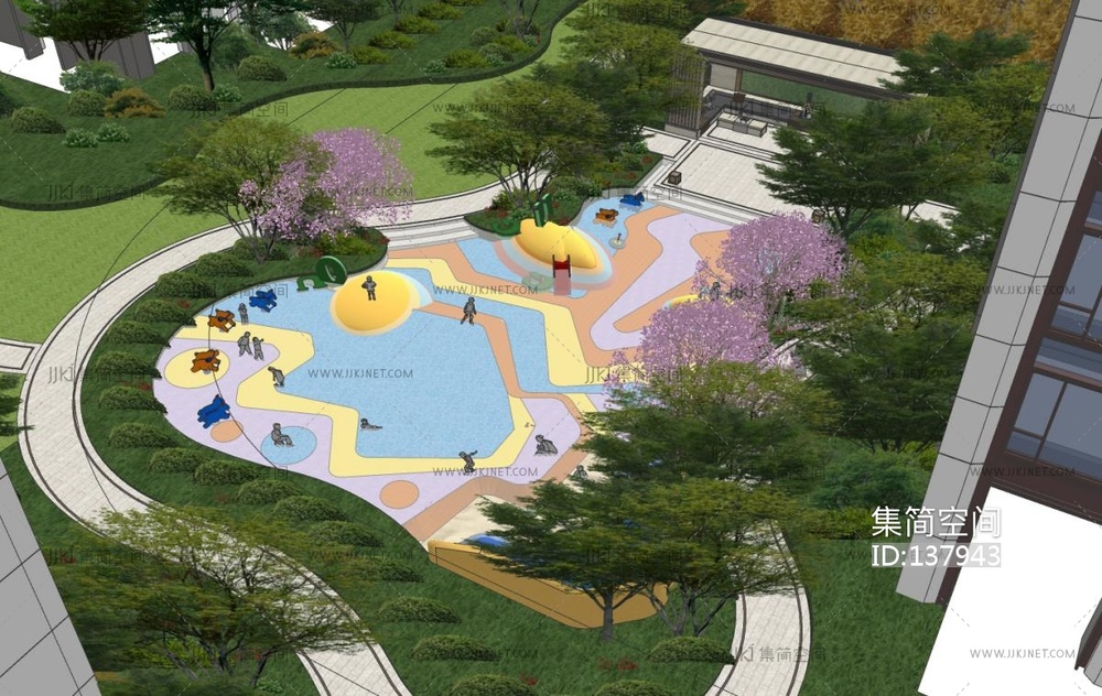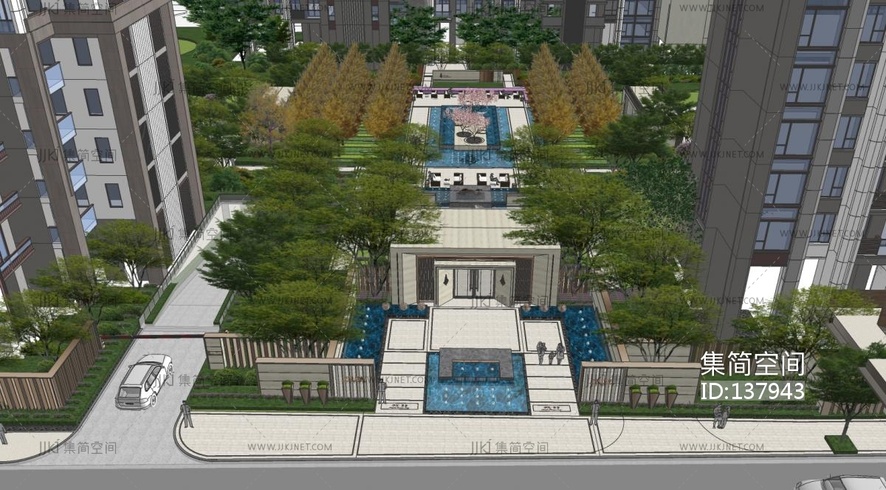 现代小区景观 su草图模型下载 [模型ID:137943]