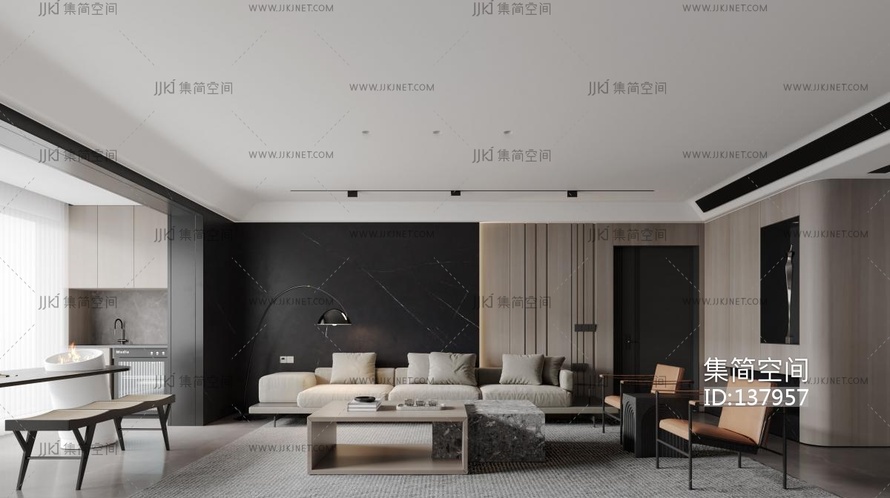 现代客厅 3d模型3d模型下载