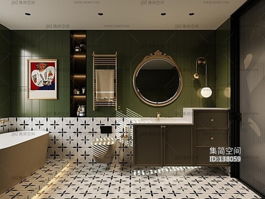 美式中古卫生间, 3d模型下载 [模型ID:138059]
