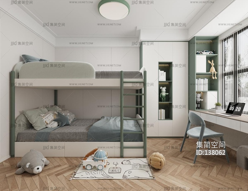 07-现代儿童房,儿童床学习桌-3d模型下载