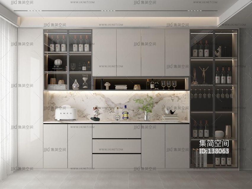 现代酒柜橱柜3d模型 3d模型下载 [模型ID:138063]