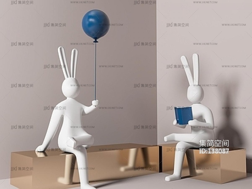 -现代兔子雕塑摆件3D模型 3d模型下载 [模型ID:138087]