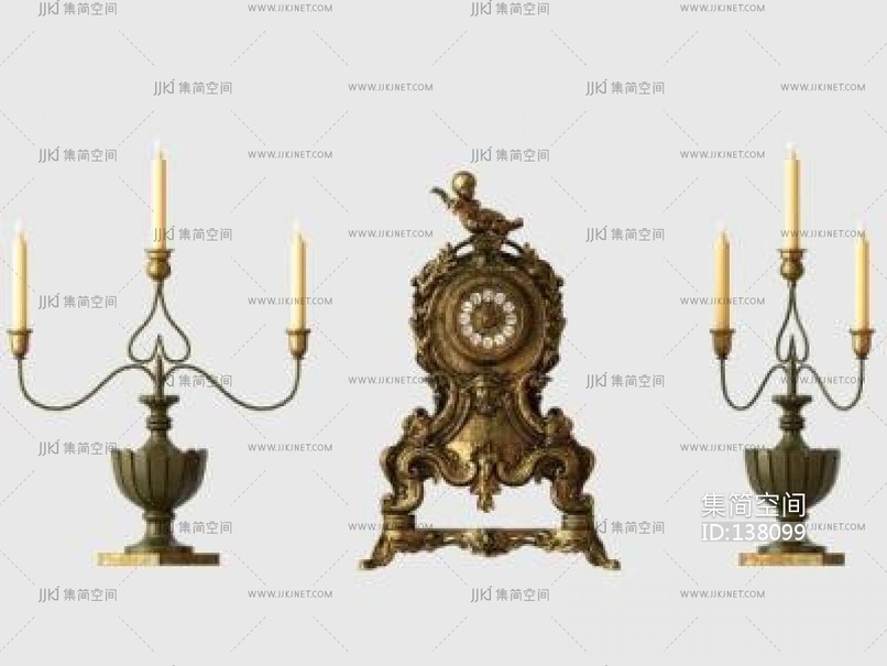 欧式烛台钟表3D模型 3d模型下载 [模型ID:138099]