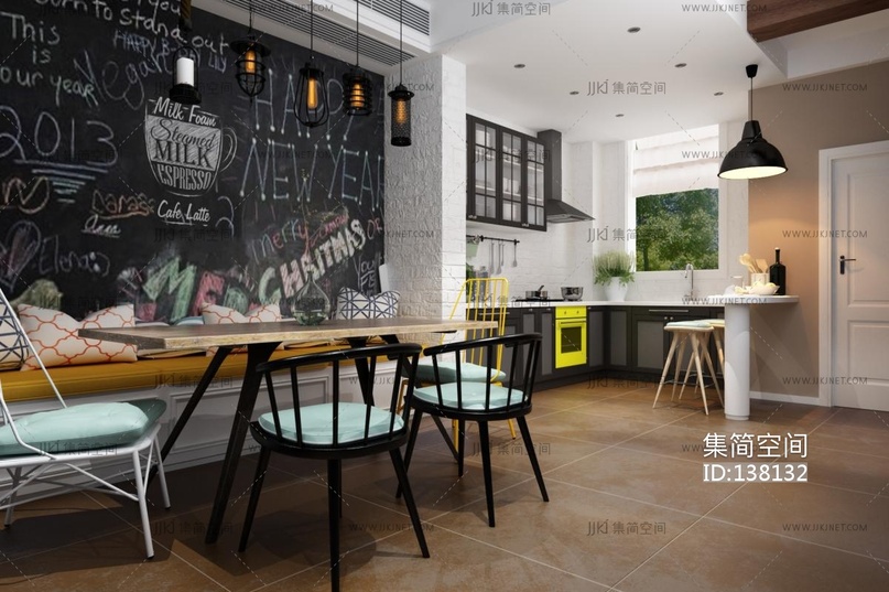 复古南洋风 餐厅和厨房,餐桌椅 3d模型下载 [模型ID:138132]