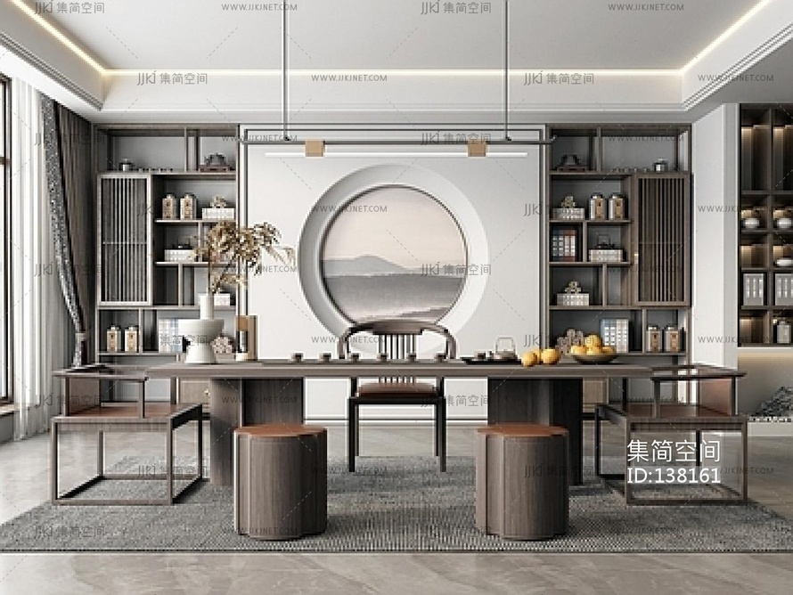 现代书房 书桌椅 壁柜 挂画 吊灯 书 盆栽 摆件3d模型下载