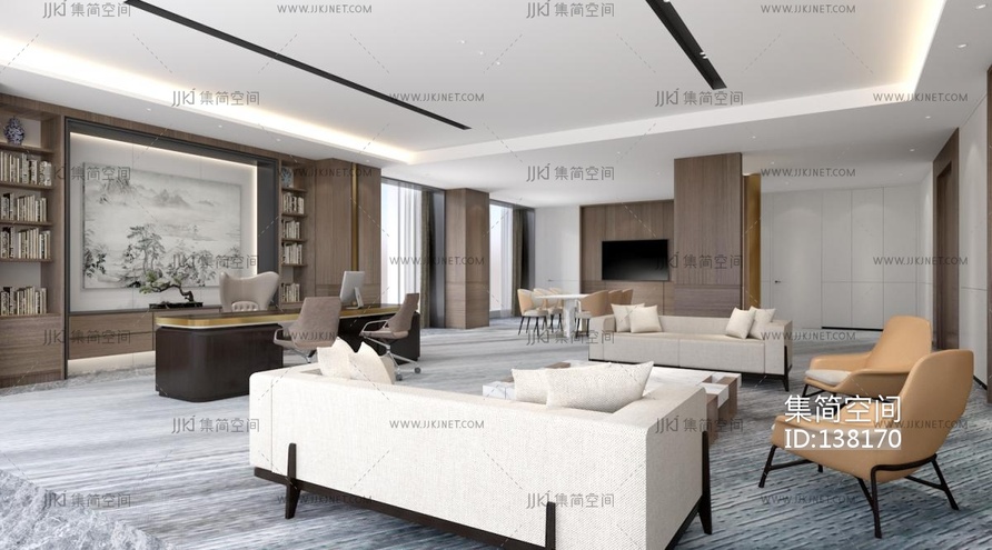董事长办公室,班台老板台,沙发茶几模型 3d模型下载 [模型ID:138170]
