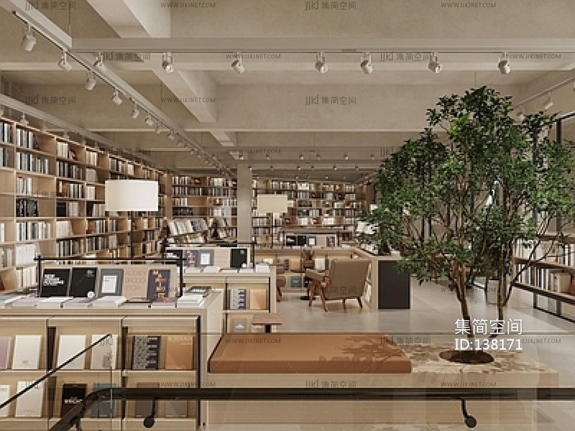 现代书吧图书馆,书店,阅读区, 3d模型下载 [模型ID:138171]