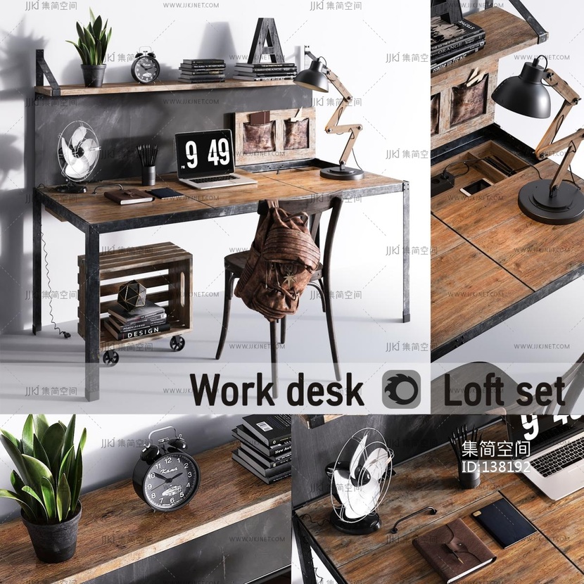 工业风学习桌 3d模型下载 [模型ID:138192]