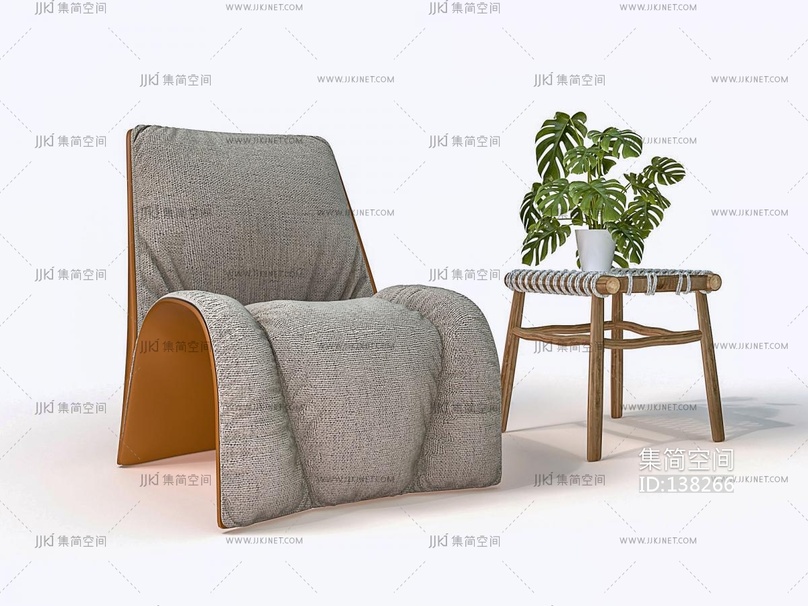 休闲椅茶几盆栽组合 3d模型下载 [模型ID:138266]