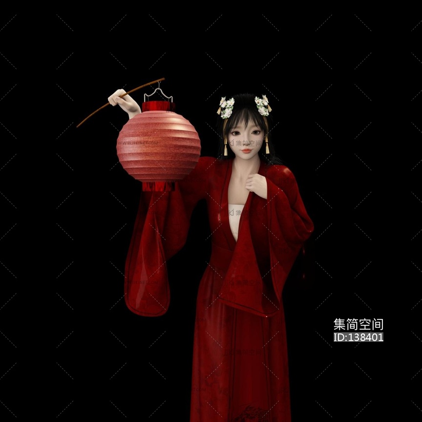 古代灯笼仕女 3d模型下载 [模型ID:138401]