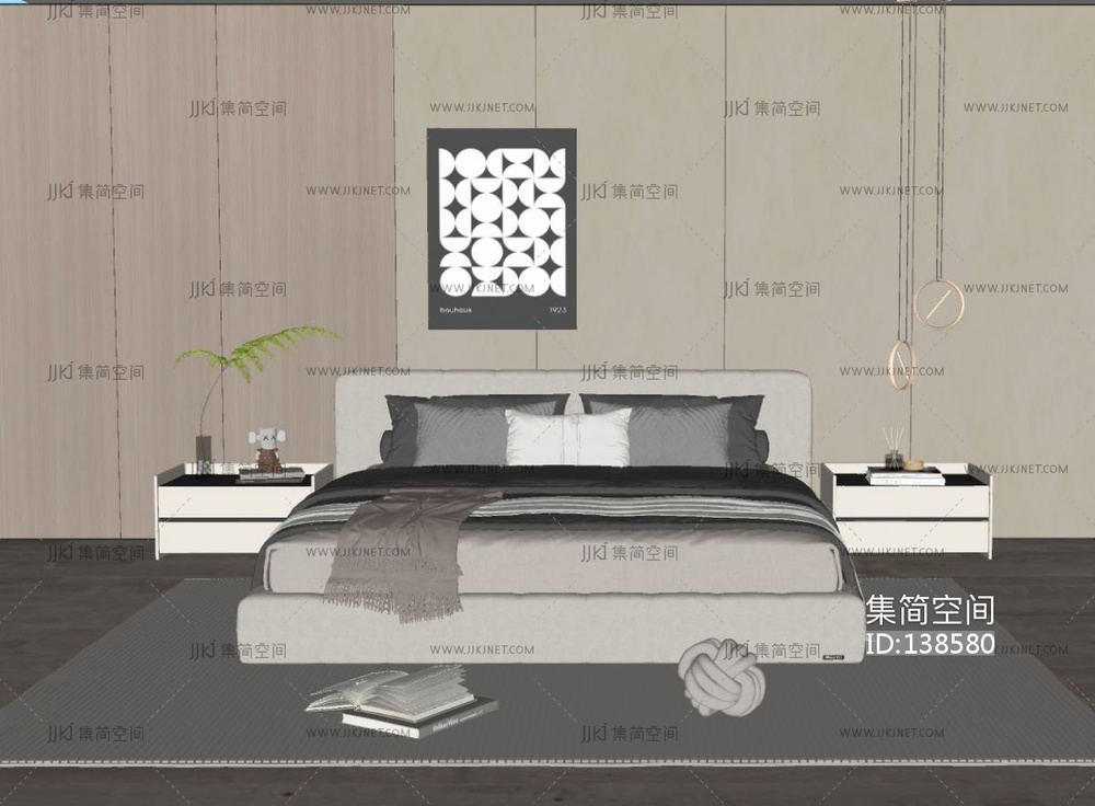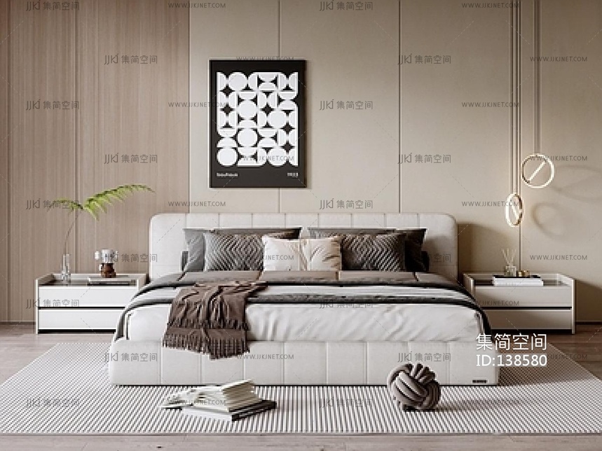 现代双人床SU模型 su草图模型下载 [模型ID:138580]