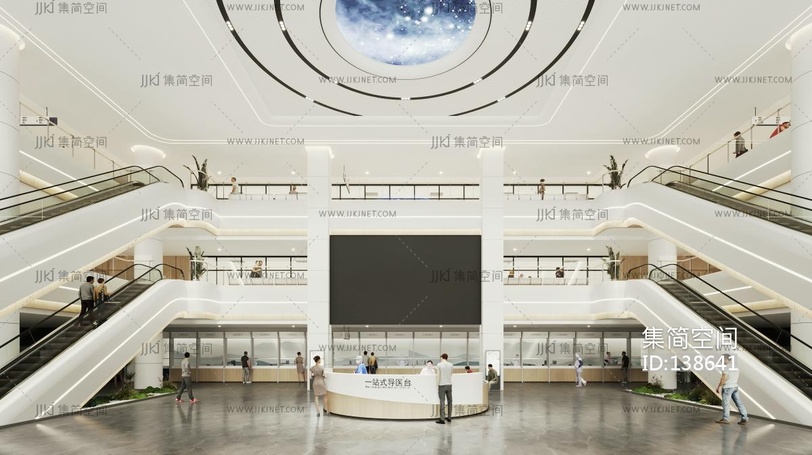 01现代新中式医院 正骨医院大厅 走廊 挂号区 医院前台 等候区 中医 西医药房3d模型下载