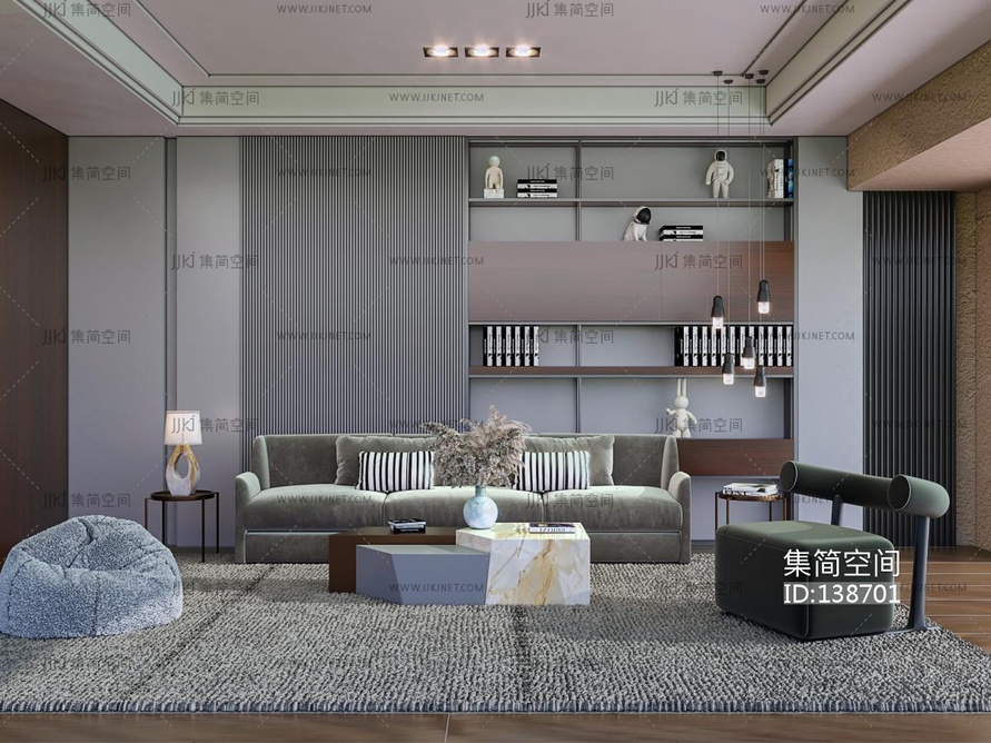 客厅 沙发茶几组合 3d模型下载 [模型ID:138701]