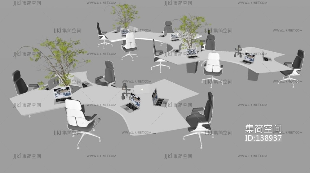 现代办公桌椅,员工工位SU模型 su草图模型下载 [模型ID:138937]