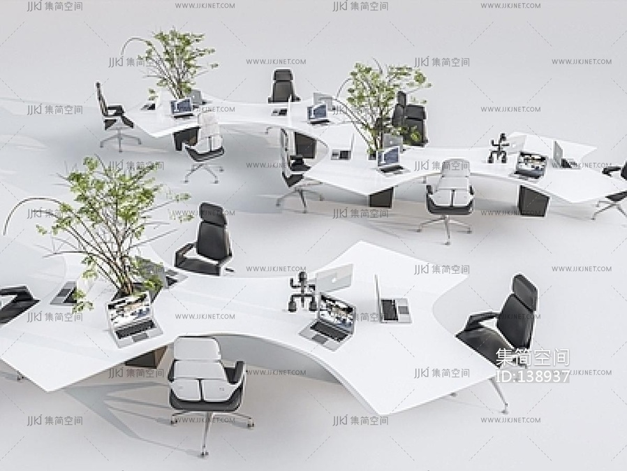 办公桌_职员桌_办公位SU模型su草图模型下载