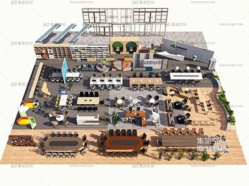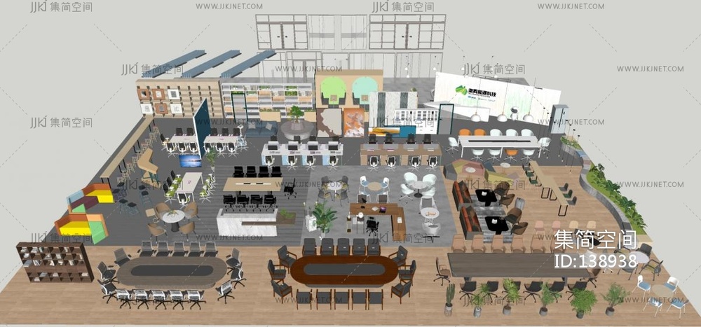 现代办公桌椅组合,会议桌组合,员工工位SU模型 su草图模型下载 [模型ID:138938]