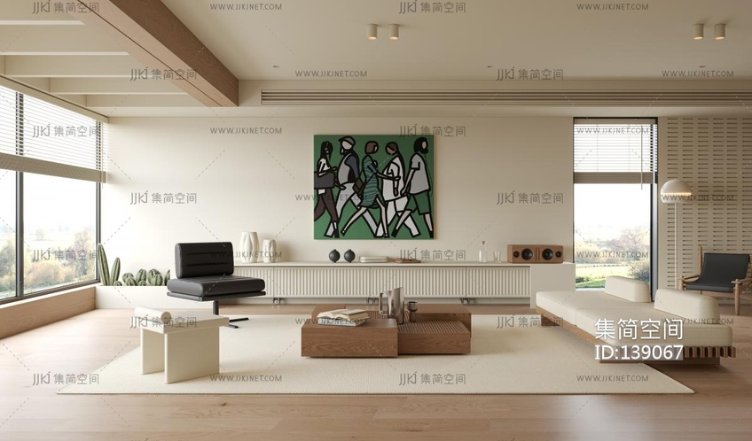 中古风客厅,美式客厅,圆形茶几,装饰画,移动电视,3d模型下载