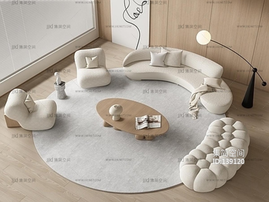 弧形沙发茶几组合 3d模型下载 [模型ID:139120]