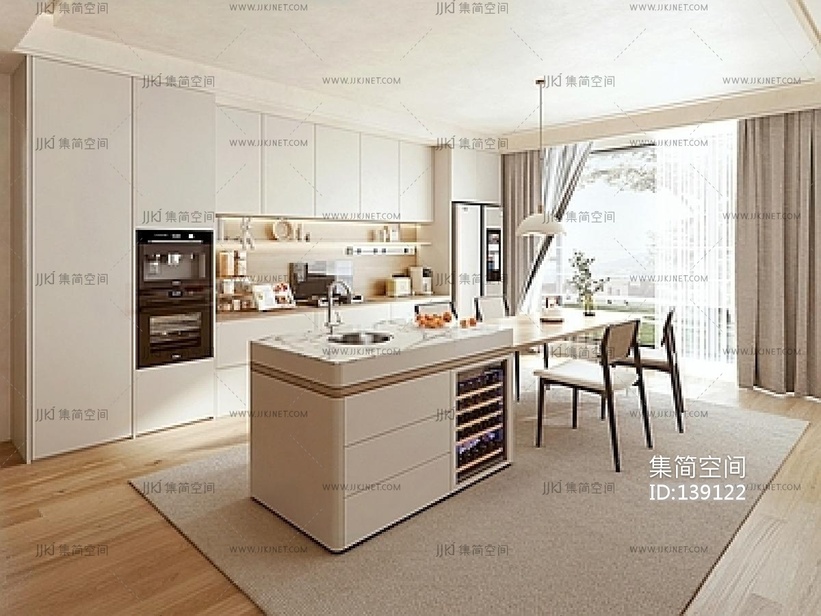 现代厨房橱柜,冰箱厨房用品3d模型下载