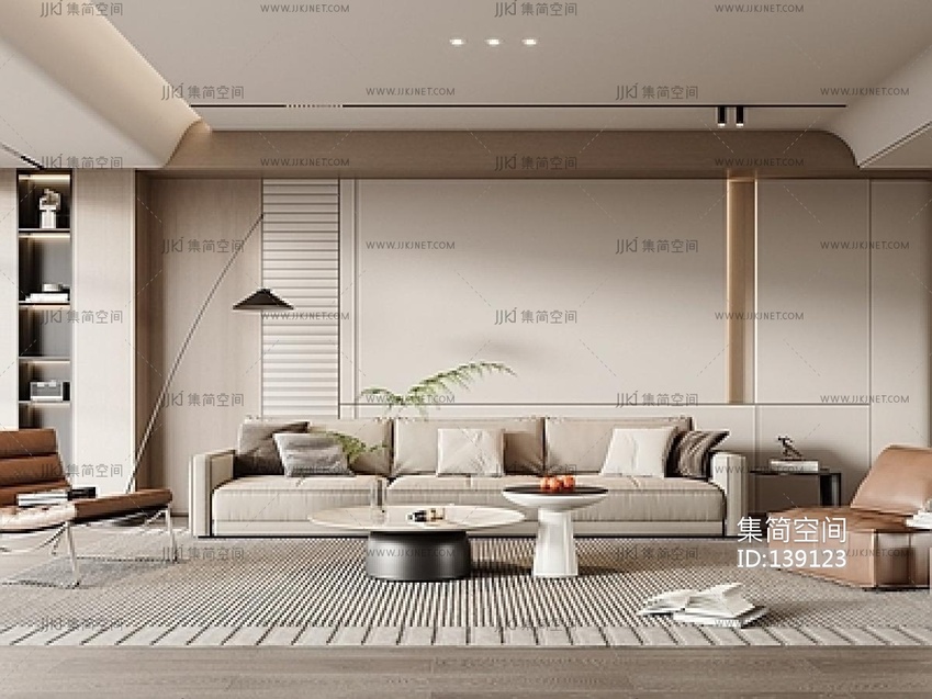 现代奶油风客厅 3d模型下载 [模型ID:139123]