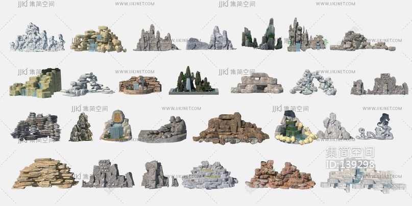 新中式假山水景 3d模型下载 [模型ID:139298]