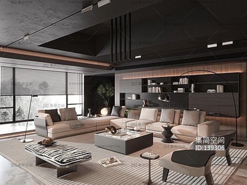 中古风客厅 沙发茶几组合 背景墙3d模型下载