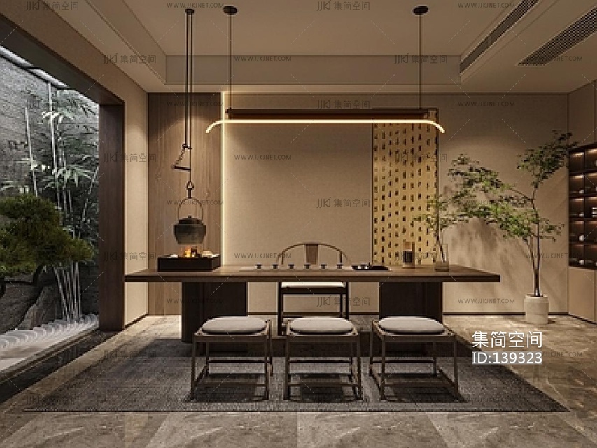 -新中式茶室 3d模型下载 [模型ID:139323]