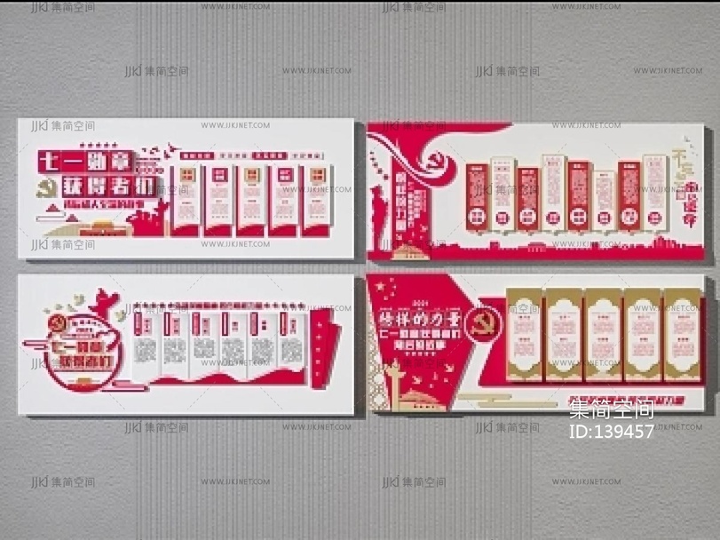 现代党建文化墙 3d模型下载 [模型ID:139457]